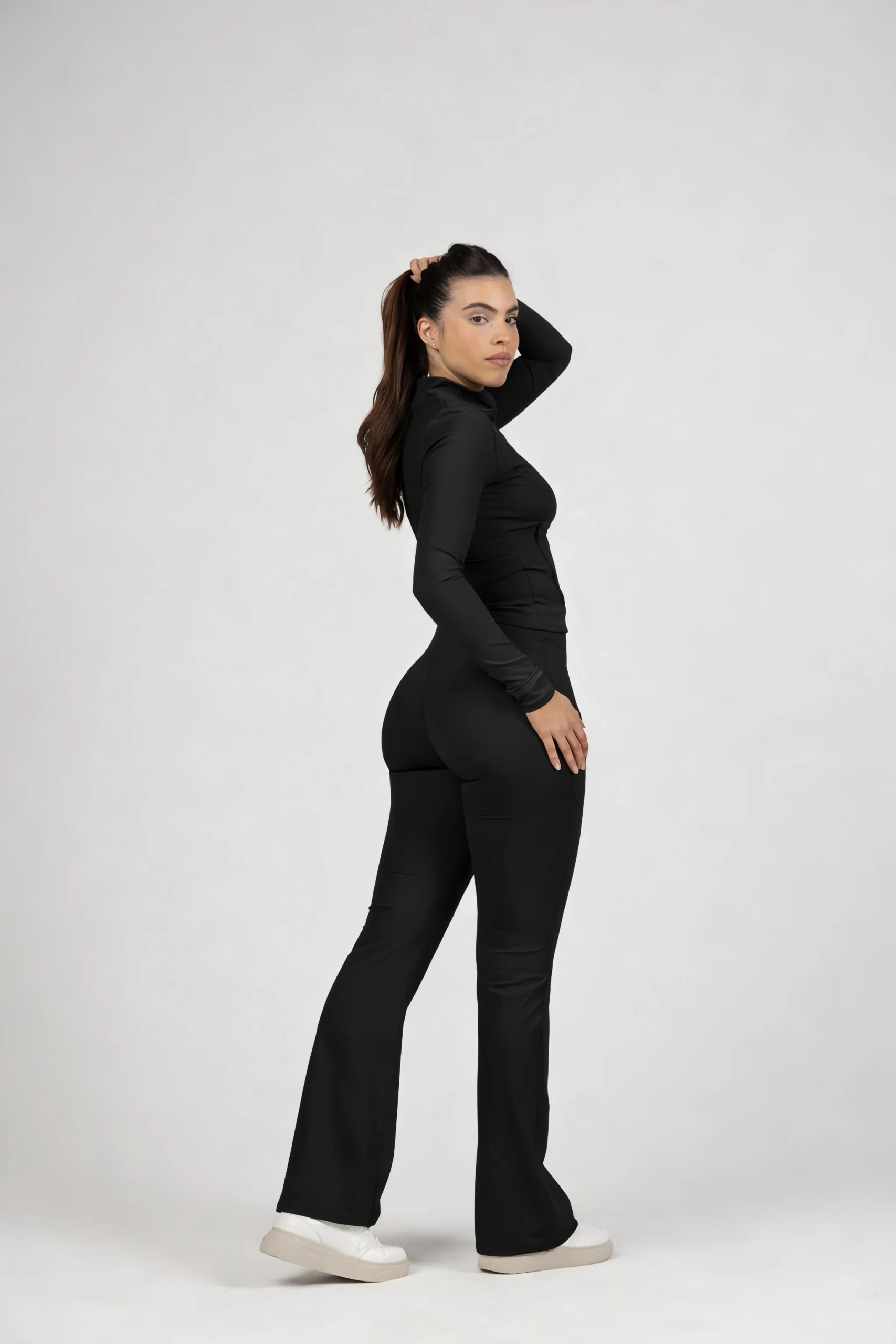 ‎ סט ספורט פרימיום מבד נעים ומחטב, עם טייץ ברגליים מתרחבות וג׳קט עם פתח לאגודל לנוחות ותנועה חופשית.